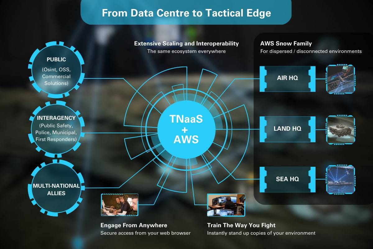 The TNaaS solution, as demonstrated with AWS, offers a comprehensive and integrated approach to address the challenges associated with dispersed headquarters, training, and cyber threats. TNaaS ensures the integrity of the tactical network through resilient and secure data transfer. By leveraging broader global networks and security capabilities, CAF can establish seamless connectivity between the battlefield and HQ. Inspired by the Cloud-to-Edge Continuum, TNaaS makes use of rugged edge compute devices, to reliably facilitate data persistence, processing, and analysis at the tactical edge. Outposts extend AWS services to on-premises environments, where TNaaS can address the interoperability of data, forming a foundation ready for exploitation by artificial intelligence and advanced algorithms, and visualized through tactical applications. Ultimately, TNaaS, coupled with the AWS cloud in this demonstration, offers CAF the ability to train in realistic and integrated environments, giving on-demand access to sophisticated training aids, and reducing costs. Overall, General Dynamics provide CAF with the tools and capabilities to adapt to modern warfare challenges while maintaining security and maximizing operational effectiveness. With TNaaS, CAF gains improved situational awareness, enhanced decision-making capabilities, and better coordination of assets across all domains.